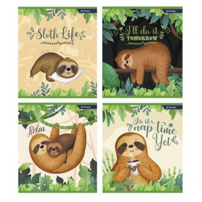 Тетрадь 36л., А5, клетка, Alingar "Ленивцы", скрепка, мелованный картон (стандарт), блок офсет AL10360