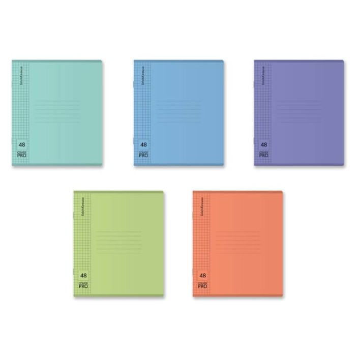 Тетрадь общая ученическая с пластиковой обложкой на скобе ErichKrause Классика CoverPro matt, Pulse, А5+, 48 листов, клетка_MIX-PACK 1шт 64765