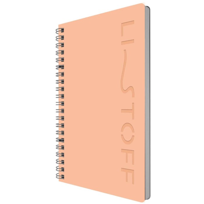 Тетради А5 LISTOFF STYLE на гребне — отличный вариант для записей своих планов, целей и идей. Обложка из изностойного цветного пластика с вырубкой и скругленными уголками защитит ваши записи от загрязнений и повреждений. Внутренний блок представлен 80 листами тонированной бумаги в клетку плотностью 70 гр./м2.