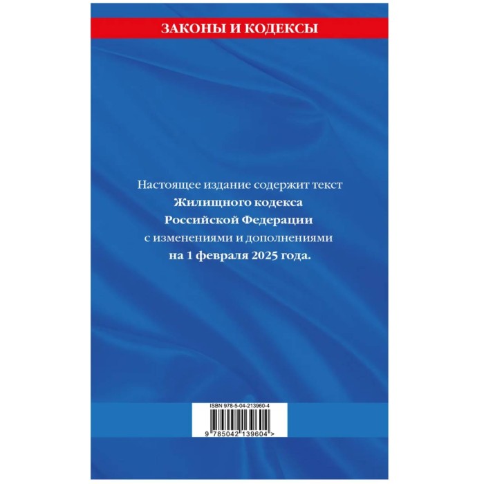 Законы и кодексы (обложка) Жилищный кодекс РФ по сост. на 01.02.25 / ЖК РФ 978-5-04-213960-4