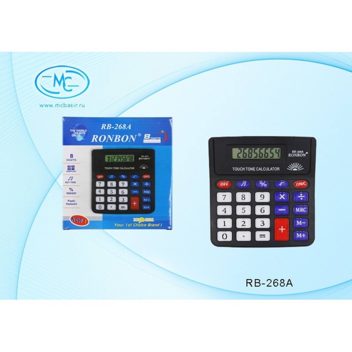 - Калькулятор: 8 разрядный, в индивидуальной упаковке, размер: 12*13*2см. RB-268A