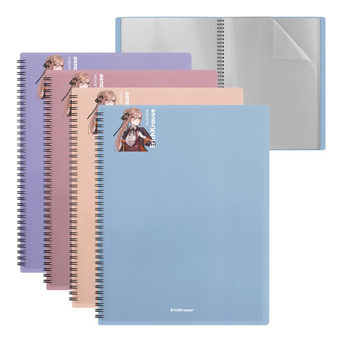 Папка файловая пластиковая на спирали ErichKrause Soft Manga, с 40 прозрачными карманами, A4, ассорти 1шт 61183