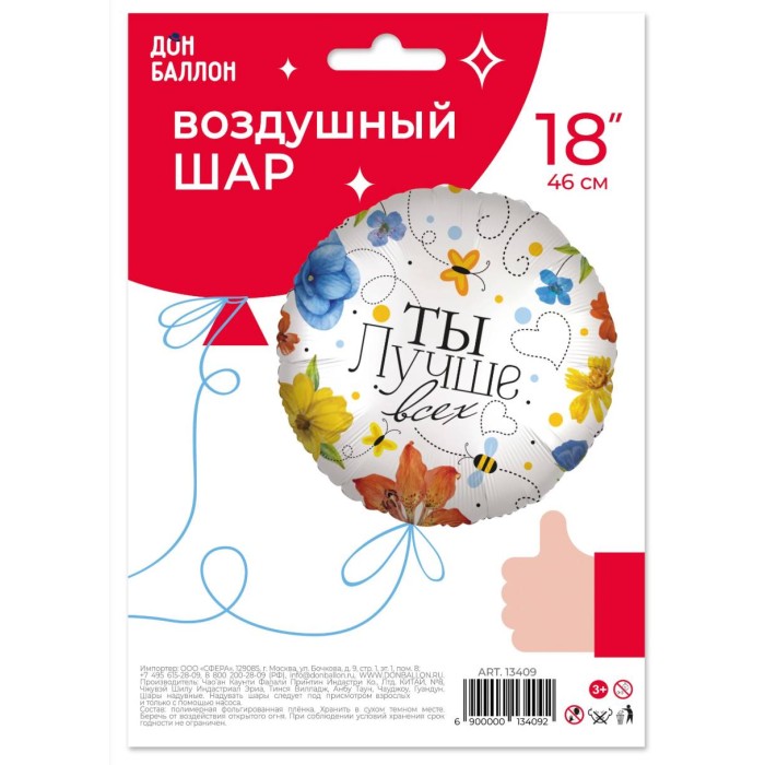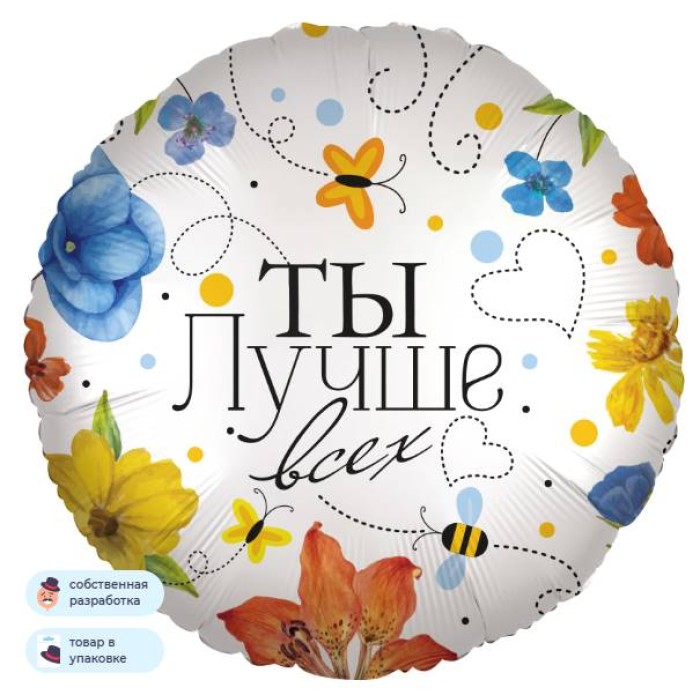 Шар (18\'\'/46 см) Круг, Ты Лучше всех (цветы), 1 шт. в уп. 13409