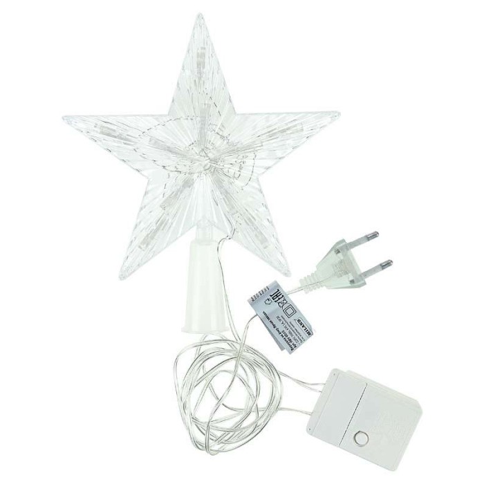 Верхушка на елку — финальный штрих в оформлении вашего новогоднего дерева! Она помогает создавать невероятно уютную атмосферу. Звезда с led-посветкой порадует домочадцев и впечатлит гостей. Подсветка работает в 2 режимах. Размер: 15х13,5 см.
